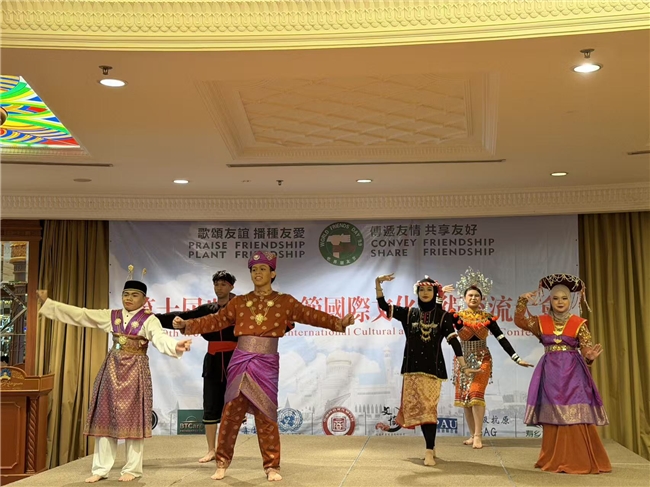 文莱特色文艺节目婆罗洲风情舞表演,赢得阵阵掌声,原始质朴的舞蹈风格、浓郁的热带风情,展现了婆罗洲独特的人文风貌。